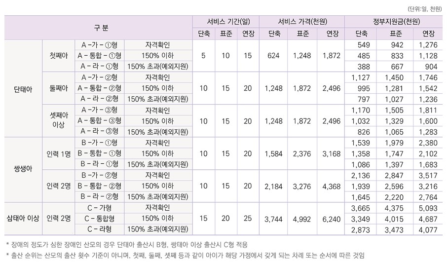 공통적으로 산모 또는 배우자가 생계·의료·주거·교육급여 수급자(해산급여 포함) 또는 차상위 계층에 해당하거나 정부가 정한 소득기준을 충족하는 출산 가정(현재 기준 중위소득 150%이하 가정)이 지원대상입니다. 대상자 선정 기준은 출산가정의 가구원수(주민등록지와 건강보험이 함께 등재된 가족 모두)와 소득(맞벌이의 경우 보험료가 낮은 배우자의 50%만 합산)을 종합 판정하게 됩니다. 각 지자체별 예외지원이 가능하기도 하므로 기준 중위소득 150%를 초과하는 경우라도 지자체 관할 보건소에 지원 가능 여부를 알아보시길 권장해드립니다.